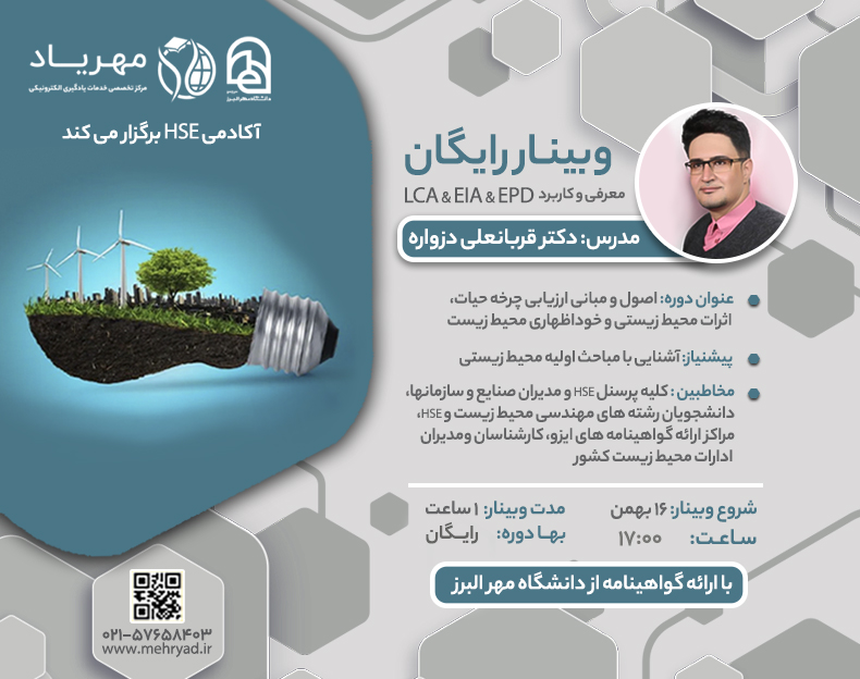 وبینار اصول و مبانی ارزیابی چرخه حیات، اثرات محیط زیستی و خوداظهاری محیط زیست